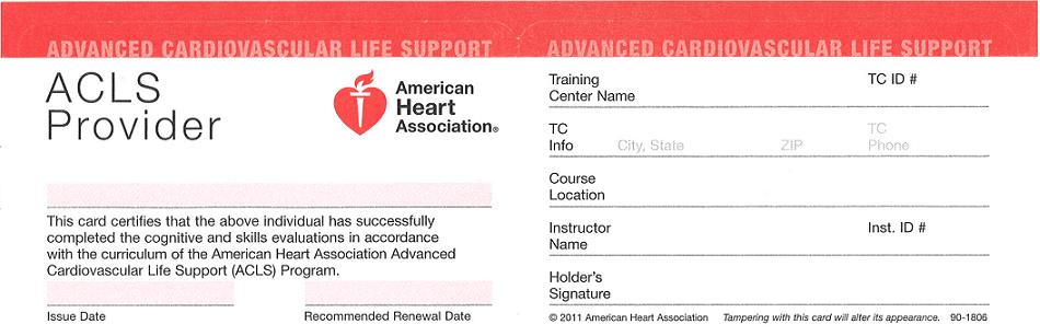 Our organization offers a standard 14-hour ACLS training course taught by certified ACLS instructors. Participants who pass both the written and practical examinations will receive the American Heart Association Advanced Cardiovascular Life Support certificate, which is valid for two years.